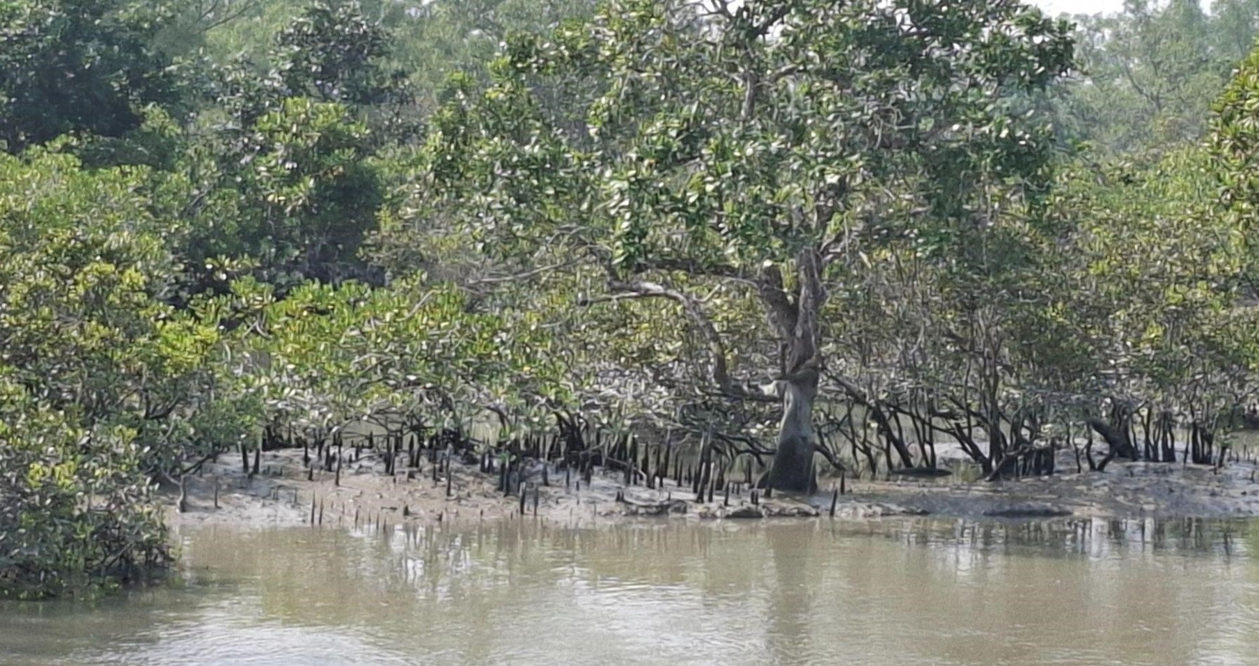 Tired of dealing with raised eyebrows, we eventually decided to visit the delta. Winter 2024 was the year we packed our bags for a short weekend trip that began with a bus ride to the ferry point at Garkhali. Beyond this point, there are no roads — the Sundarbans, being a vast network of waterways, can only be reached by boat. It was a promising start. The absence of roads was new to me. Being firmly urban, I couldn’t quite wrap my head around the expanse of water that snaked into narrow ‘alleyways’ and broadened into wide, open ‘highways.’ The greenery on either bank of the river system was of incomparable beauty.